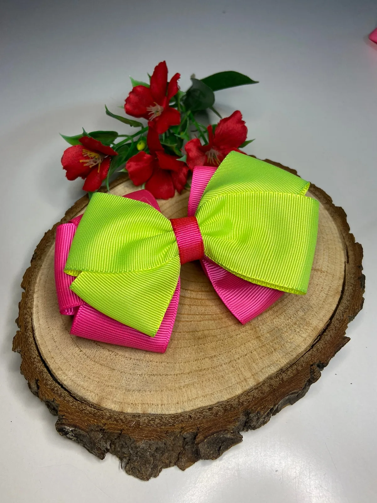Laço verde e rosa